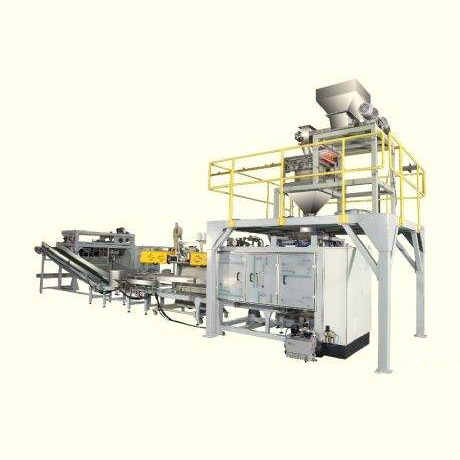全自動(粉料)給袋包裝系統(tǒng)主要針對化工、食品等行業(yè)而研制的新型包裝機組。該機組具有自動供袋、上袋、稱量、填充、封口等功能??砂b物料如顏料、面粉等粉狀、超細粉料。